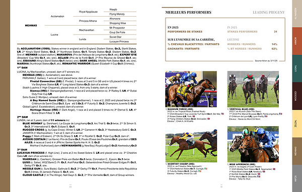 By ACCLAMATION( 1999). Stakes winner in england and in England, Diadem Stakes, Gr. 2, Starlit Stakes, LR, 2 nd King ' s Stand Stakes, Gr. 2, 3 rd Nunthorpe Stakes, Gr. 1, Temple Stakes Gr. 2, Diadem Stakes, Gr. 2. Sire of: MEHMAS( subject stallion), MAKAROVA( Prix de l ' Abbaye de Longchamp Gr. 1, etc), EXPERT EYE( Breeders ' Cup Mile Gr. 1, etc; sire), ACLAIM( Prix de la ForĂȘt Gr. 1, 2 nd Prix Maurice de Gheest Gr. 1, etc; sire), EQUIANO( King ' s Stand Stakes Gr. 1( twice); sire), DARK ANGEL( Middle Park Stakes Gr. 1, etc; sire), MARSHA( Nunthorpe Stakes Gr. 1, etc), ROMANTIC WARRIOR( Queen Elizabeth II Cup Gr. 1( 3 times)),