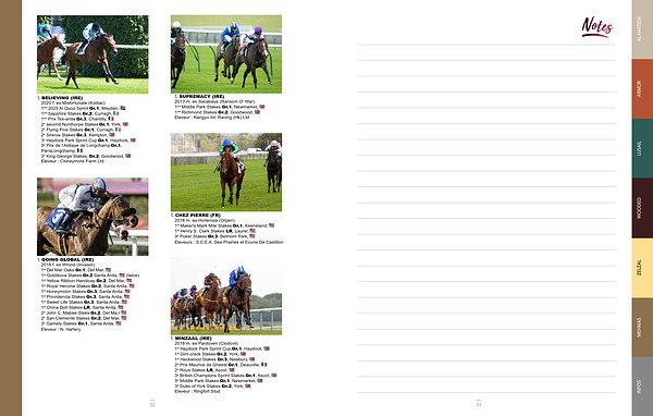 � BELIEVING( IRE) 2020 f. ex Misfortunate( Kodiac) 1 ère 2025 Al Quoz Sprint Gr. 1, Meydan, 1 ère Sapphire Stakes Gr. 2, Curragh, 1 ère Prix Tex-anita Gr. 3, Chantilly, 2 e second Nunthorpe Stakes Gr. 1, York, 2 e Flying Five Stakes Gr. 1, Curragh, 2 e Sirenia Stakes Gr. 3, Kempton, 3 e Haydock Park Sprint Cup Gr. 1, Haydock, 3 e Prix de l ' Abbaye de Longchamp Gr. 1, ParisLongchamp, 3 e King George Stakes, Gr. 2, Goodwood, Eleveur: Cloneymore Farm Ltd