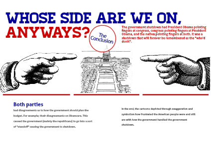 In the end, the cartoons depicted through exaggaration and symbolism how frustrated the American people were and still are with how the government handled the government shutdown.