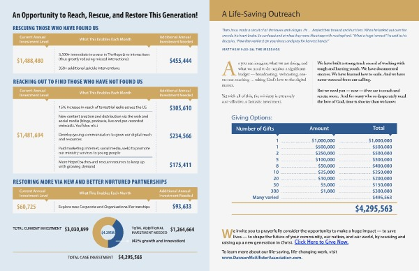 e invite you to prayerfully consider the opportunity to make a huge impact — to save