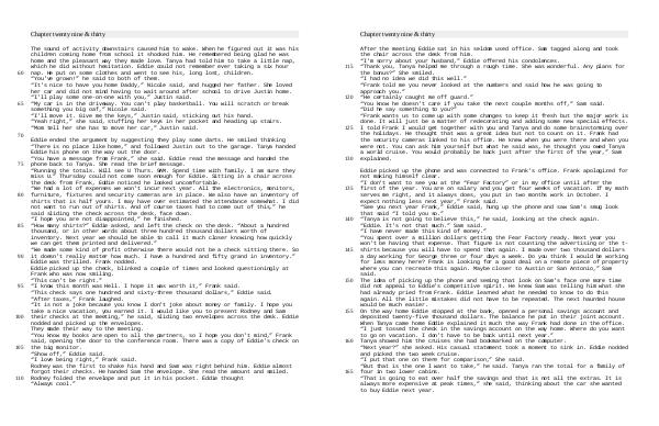 Eddie ended the argument by suggesting they play some darts. He smiled thinking“ There is no place like home,” and followed Justin out to the garage. Tanya handed Eddie his phone on the way out the door.“ You have a message from Frank,” she said. Eddie read the message and handed the phone back to Tanya. She read the brief message.“ Running the totals. Will see U Thurs. 9AM. Spend time with family. I am sure they miss U.” Thursday could not come soon enough for Eddie. Sitting in a chair across the desk from Frank, Eddie noticed he looked uncomfortable.“ We had a lot of expenses we won’ t incur next year. All the electronics, monitors, furniture, fixtures and security cameras are in place. We also have an inventory of shirts that is half yours. I may have over estimated the attendance somewhat. I did not want to run out of shirts. And of course taxes had to come out of this,” he said sliding the check across the desk, face down.“ I hope you are not disappointed,” he finished.“ How many shirts?” Eddie asked, and left the check on the desk.“ About a hundred thousand, or in other words about three hundred thousand dollars worth of inventory. Next year we should be able to call it much closer knowing how quickly we can get them printed and delivered.”“ We made some kind of profit otherwise there would not be a check sitting there. So it doesn’ t really matter how much. I have a hundred and fifty grand in inventory.” Eddie was thrilled. Frank nodded. Eddie picked up the check, blinked a couple of times and looked questioningly at Frank who was now smiling.“ This can’ t be right.”“ I know this month was Hell. I hope it was worth it,” Frank said.“ This check says one hundred and sixty-three thousand dollars,” Eddie said.“ After taxes,” Frank laughed.“ It is not a joke because you know I don’ t joke about money or family. I hope you take a nice vacation, you earned it. I would like you to present Rodney and Sam their checks at the meeting,” he said, sliding two envelopes across the desk. Eddie nodded and picked up the envelopes. They made their way to the meeting.“ You know my books are open to all the partners, so I hope you don’ t mind,” Frank said, opening the door to the conference room. There was a copy of Eddie’ s check on the big monitor.“ Show off,” Eddie said.“ I love being right,” Frank said. Rodney was the first to shake his hand and Sam was right behind him. Eddie almost forgot their checks. He handed Sam the envelope. She read the amount and smiled. Rodney folded the envelope and put it in his pocket. Eddie thought“ Always cool.”