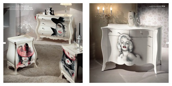 comò/chest of drawers GLAMOUR comodino/bedside cabinet SEDUCTION comodino/bedside cabinet ATTRACTION 88 credenza/sideboard DIVA 89