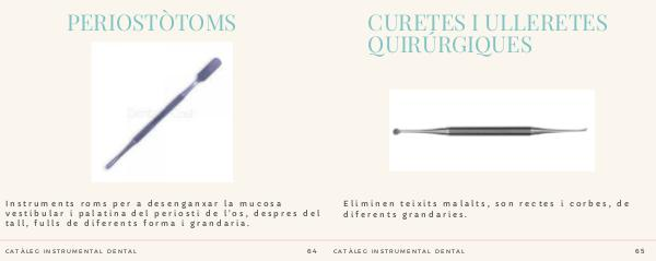 CURETES I ULLERETES QUIRÚRGIQUES Eliminen teixits malalts, son rectes i corbes, de diferents grandaries. CATÀLEG INSTRUMENTAL DENTAL 65