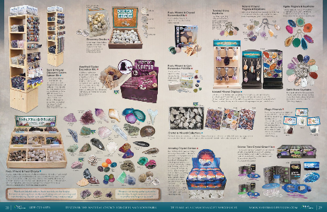 include agate slabs, amethyst clusters, obsidian arrowheads, deser t roses,