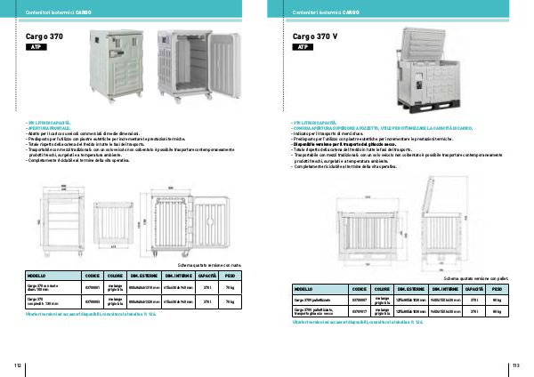 - 370 LITRI DI CAPACITÀ.- APERTURA FRONTALE.- Adatto per il carico su veicoli commerciali di medie dimensioni.- Predisposto per l’ utilizzo con piastre eutettiche per incrementare le prestazioni termiche.- Totale rispetto della catena del freddo in tutte le fasi del trasporto.- Trasportabile con mezzi tradizionali: con un solo veicolo non coibentato è possibile trasportare contemporaneamente prodotti freschi, surgelati e a temperatura ambiente.- Completamente riciclabile al termine della vita operativa.