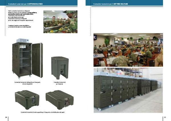 Tutti i contenitori isotermici e refrigerati Melform possono essere utilizzati in campo militare, aeronautico, navale e per la protezione civile. Contenitori e vassoi isotermici per la distribuzione dei pasti. Contenitori isotermici e refrigerati per lo stoccaggio ed il trasporto degli alimenti.