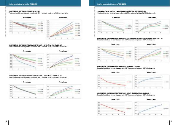 CONTENITORI ISOTERMICI PER TRASPORTO ALIMENTI- AF150- Prestazioni termiche con temperatura ambiente di 25 ° C e contenuto liquido pari al 50 % di volume utile.