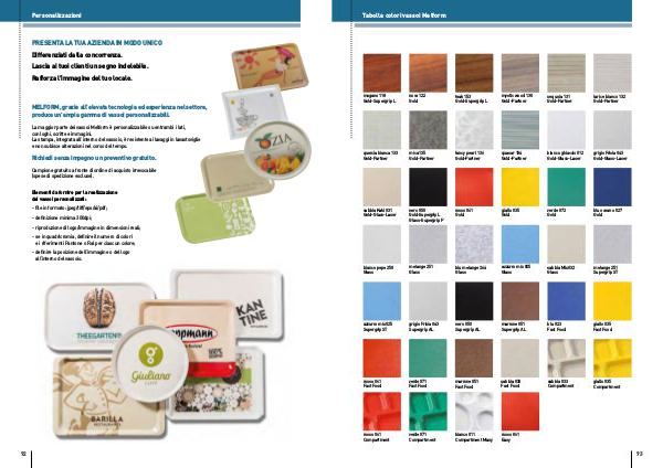 La maggior parte dei vassoi Melform è personalizzabile su entrambi i lati, con loghi, scritte e immagini. La stampa, integrata all’ interno del vassoio, è resistente ai lavaggi in lavastoviglie e non subisce alterazioni nel corso del tempo.