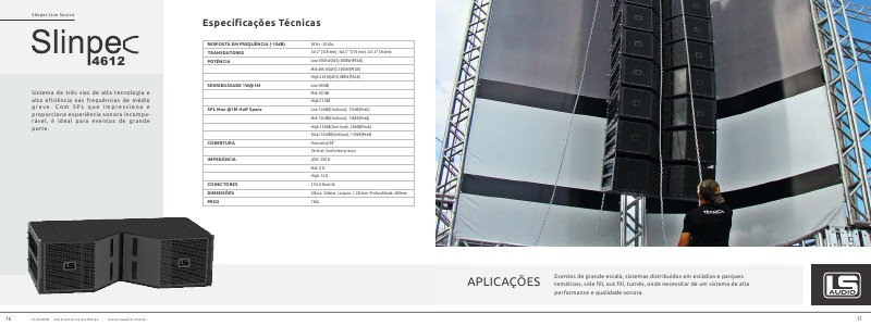 temáticos, side fill, out fill, turnês, onde necessitar de um sistema de alta
