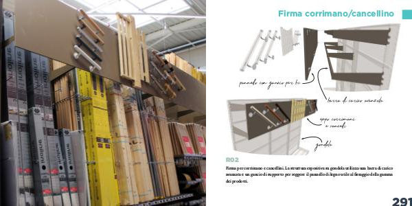 Firma per corrimano e cancellini. La struttura espositiva su gondola utilizza una barra di carico