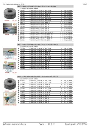 ENERGIA BASSA TENSIONE FG16 ( O ) R16 - GRIGIO QUADRIPOLARE IDXG0N0H0H0 CONDUTTORI ISOLATI GOMMA CG2317M FG16OR16-0,6 / 1KV FLEX 4X1,5 GR € 1.140,33 / 1000 CG2317B FG16OR16-0,6 / 1KV FLEX 4X1,5 GR _ € 1.140,33 / 1000 CG2358 FG16OR16-0,6 / 1KV FLEX 4X10 GR _ € 5.845,30 / 1000 CG2366 FG16OR16-0,6 / 1KV FLEX 4X16 GR _ € 8.958,41 / 1000 CG2325M FG16OR16-0,6 / 1KV FLEX 4X2,5 GR € 1.645,72 / 1000 CG2325B FG16OR16-0,6 / 1KV FLEX 4X2,5 GR _ € 1.645,72 / 1000 CG2374 FG16OR16-0,6 / 1KV FLEX 4X25 GR _ € 14.011,76 / 1000 CG2333M FG16OR16-0,6 / 1KV FLEX 4X4 GR € 2.456,69 / 1000 CG2333B FG16OR16-0,6 / 1KV FLEX 4X4 GR _ € 2.456,69 / 1000 CG2341M FG16OR16-0,6 / 1KV FLEX 4X6 GR € 3.469,39 / 1000 CG2341B FG16OR16-0,6 / 1KV FLEX 4X6 GR _ € 3.469,39 / 1000 CG2424 FG16OR16-0,6 / 1KV FX . 3X120 + 1X70 GR € 62.709,79 / 1000 CG2382 FG16OR16-0,6 / 1KV FX . 3X35 + 1X25 GR . € 18.476,75 / 1000 CG2390 FG16OR16-0,6 / 1KV FX . 3X50 + 1X25 GR € 25.163,66 / 1000 CG2408 FG16OR16-0,6 / 1KV FX . 3X70 + 1X35 GR € 36.148,04 / 1000 CG2416 FG16OR16-0,6 / 1KV FX . 3X95 + 1X50 _ € 47.926,53 / 1000