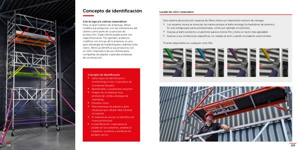Con tu logo y / o colores corporativos Para un gran número de empresas , Altrex codifica sus productos con las indicaciones del cliente como parte de su proceso de producción . Cada cliente puede poner sus especificaciones . Por ejemplo , podemos codificar con el logo de la empresa ; es una gran estrategia de marketing pero además evita robos . Altrex ya identifica sus productos con el color corporativo de sus clientes para compañías de alquiler o grandes empresas de construcción .