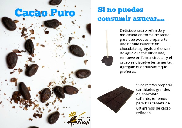 Delicioso cacao refinado y moldeado en forma de tacita para que puedas prepararte una bebida caliente de chocolate, agrégalo a 6 onzas de agua o leche hirviendo, remueve en forma circular y el cacao se disuelve lentamente. Agrégale el endulzante que prefieras.