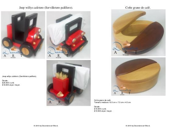 Jeep willys cafetero (Servilletero palillero). Jeep willys cafetero (Servilletero palillero). Desde: $25.000 x und. $18.000 al por mayor. © 2019 by Decorative art Wood.
