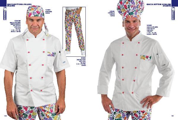 GIACCA BOTTONI A PALLINA ATLANTA 075950 CAPPELLO CUOCO PEPPER 059655 GIACCA ATLANTA 65% polyester 35% cotton 195 gr/m 2 S • M • L • XL • XXL BIANCO + PEPPER 141