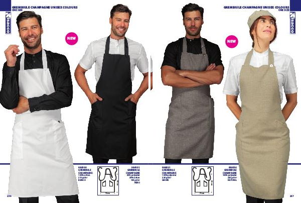 GREMBIULE CHAMPAGNE UNISEX COLOURS ONE SIZE NEW 088100 GREMBIULE CHAMPAGNE 088101 GREMBIULE CHAMPAGNE 100% cotton 210 gr/m 2 BIANCO 70 cm 256 65% polyester 35% cotton 195 gr/m 2 NERO