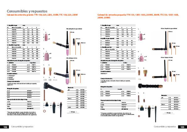 1. Boquilla de gas mm N.º Número de pedido a b c d