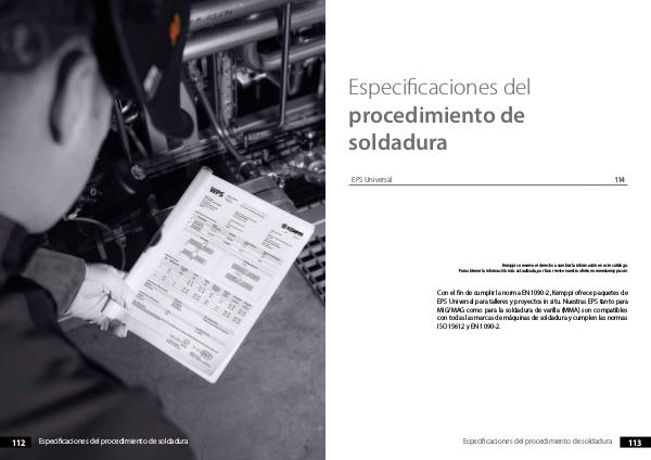 112 Especificaciones del procedimiento de soldadura