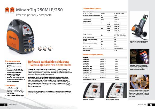 como las funciones Minilog y de arco pulsado. Su ciclo de trabajo del 35% y peso