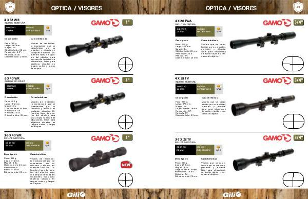 5,5 mm Velocidad: 212 m / s. Peso: 2,5 kg. Largo: 108 cm. Capacidad: 1. |