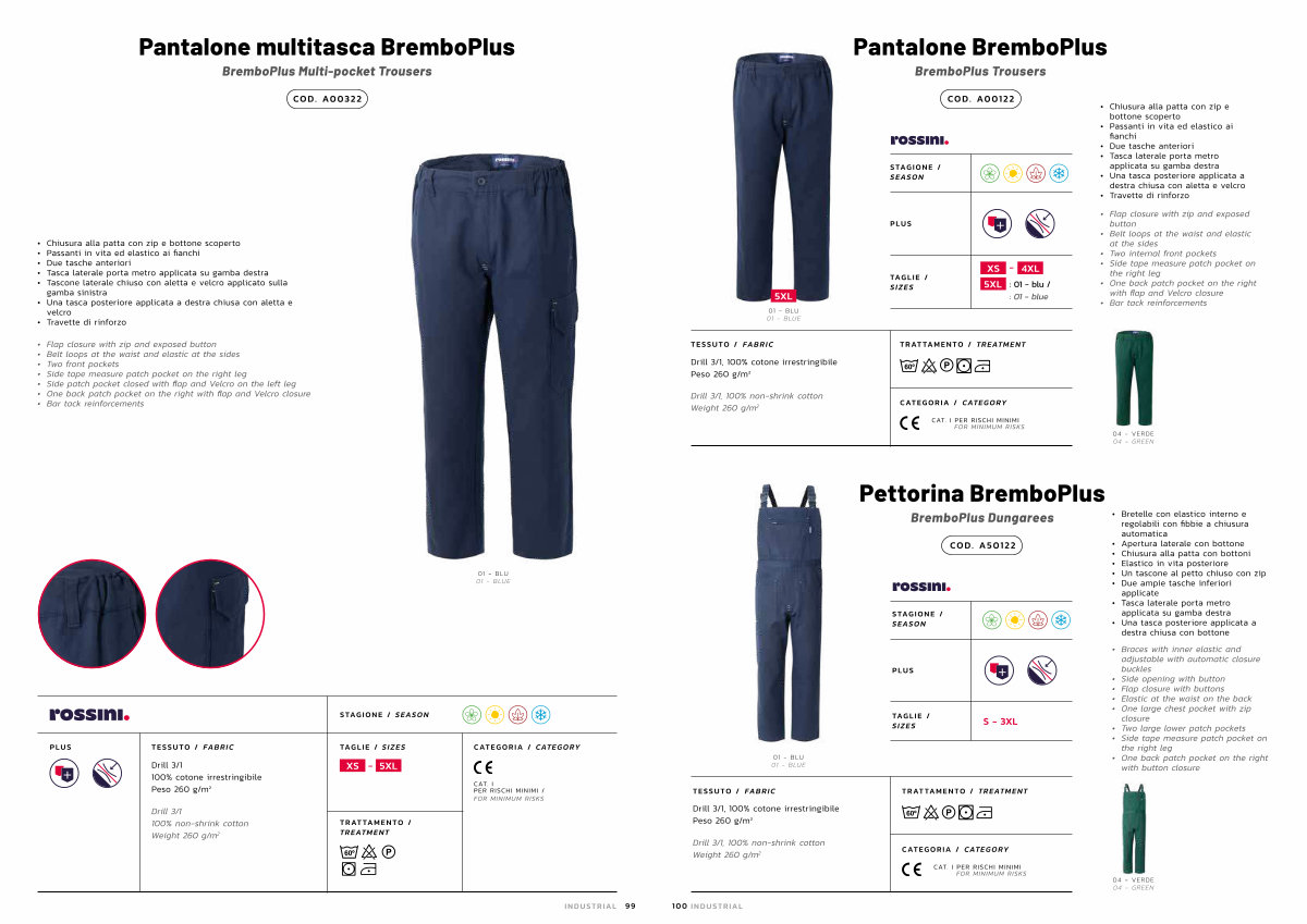 Drill 3 / 1, 100 % non-shrink cotton Weight 260 g / m 2