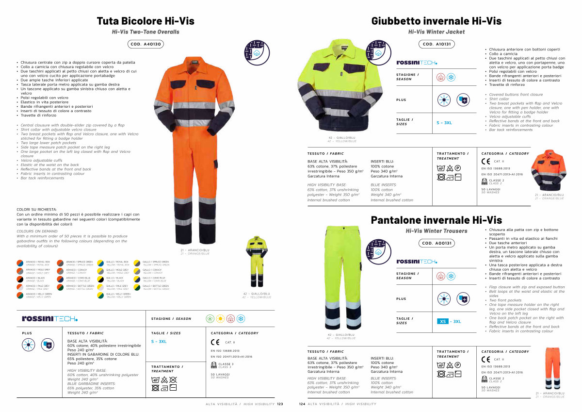 HIGH VISIBILITY BASE: 63 % cotton, 37 % unshrinking polyester- Weight 350 g / m ² Internal brushed cotton