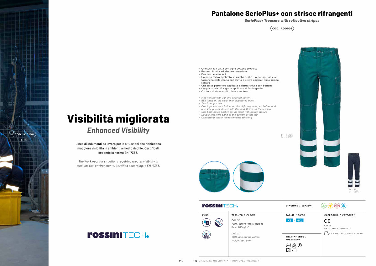 Linea di indumenti da lavoro per le situazioni che richiedono maggiore visibilità in ambienti a medio rischio. Certificati secondo la norma EN 17353.