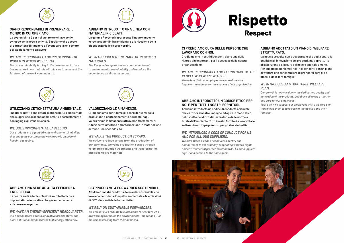 Abbiamo introdotto un codice di condotta aziendale che certifica il nostro impegno ad agire in modo etico, nel rispetto dei diritti dei lavoratori e delle norme a tutela dell’ ambiente. Tutti i nostri fornitori a loro volta lo sottoscrivono impegnandosi per gli stessi obiettivi.