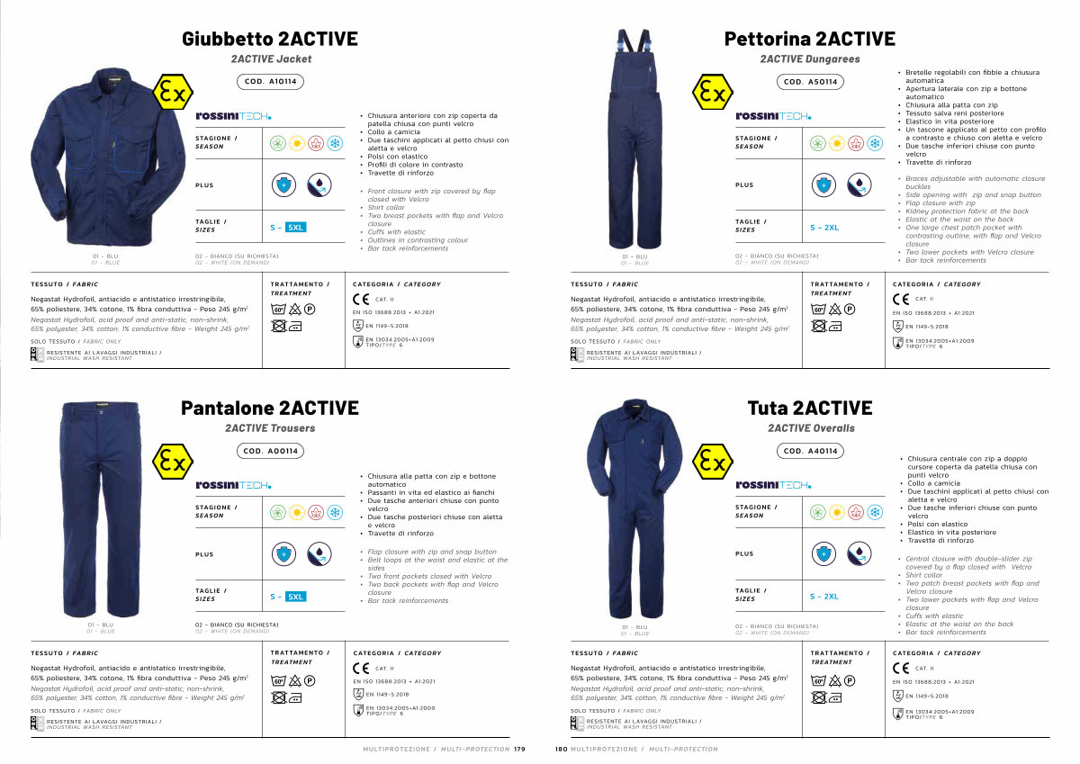 TREATMENT Negastat Hydrofoil, antiacido e antistatico irrestringibile, 65 % poliestere, 34 % cotone, 1 % fibra conduttiva- Peso 245 g / m 2 Negastat Hydrofoil, acid proof and anti-static, non-shrink, 65 % polyester, 34 % cotton, 1 % conductive fibre- Weight 245 g / m 2