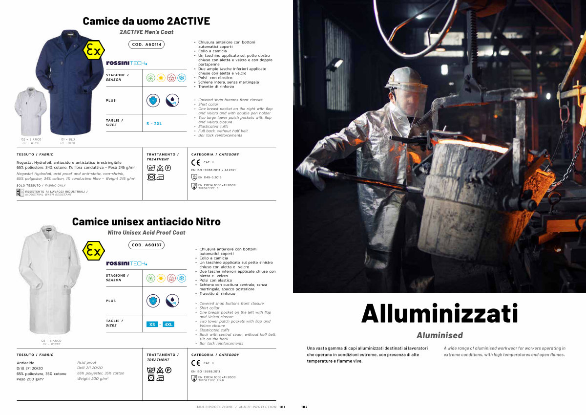 Una vasta gamma di capi alluminizzati destinati ai lavoratori che operano in condizioni estreme, con presenza di alte temperature e fiamme vive.
