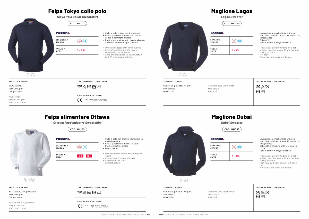 • Cuffs and waistband in elastic ribbed knit 2 / 1 with double stitching