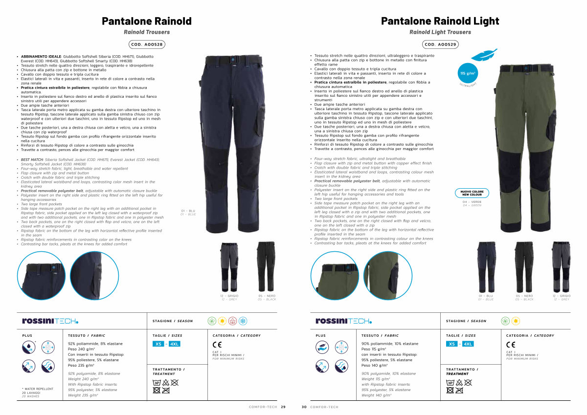 • Tessuto stretch nelle quattro direzioni, leggero, traspirante e idrorepellente