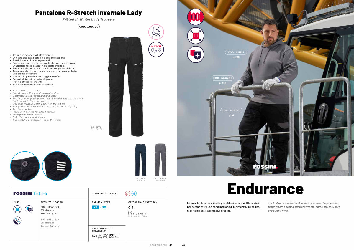 98 % cotone twill 2 % elastane Peso 340 g / m ²