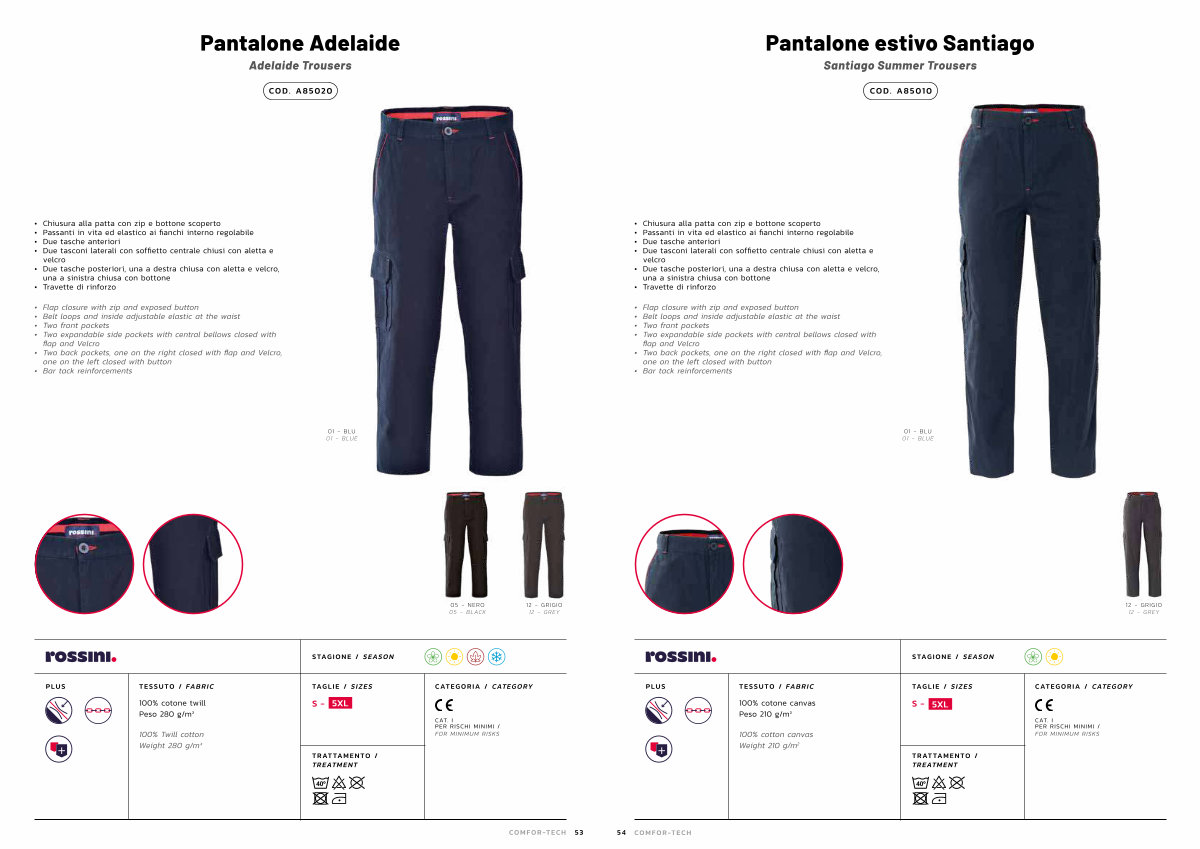 • Due tasche posteriori, una a destra chiusa con aletta e velcro, una a sinistra chiusa con bottone
