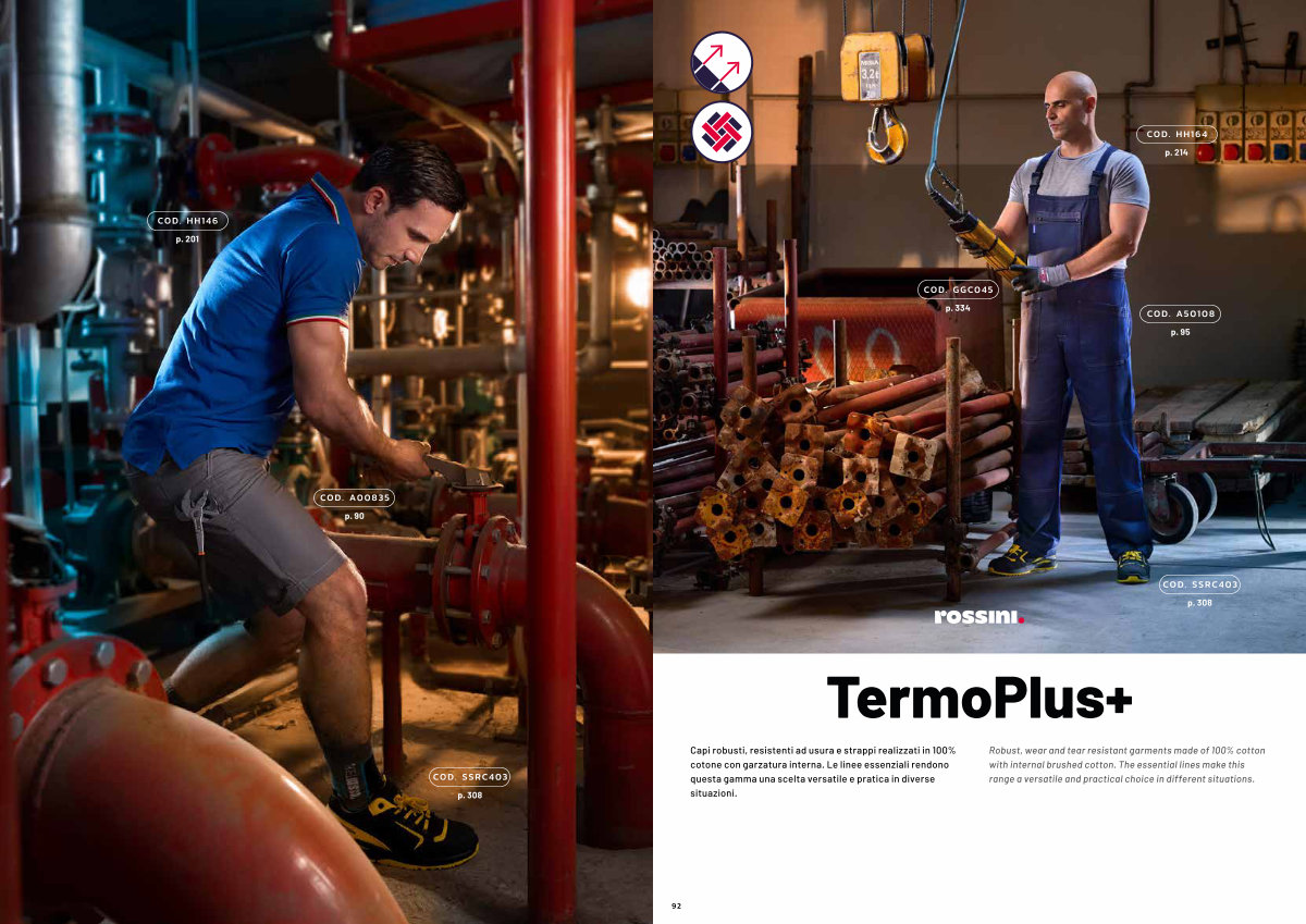 Robust, wear and tear resistant garments made of 100 % cotton with internal brushed cotton. The essential lines make this range a versatile and practical choice in different situations.
