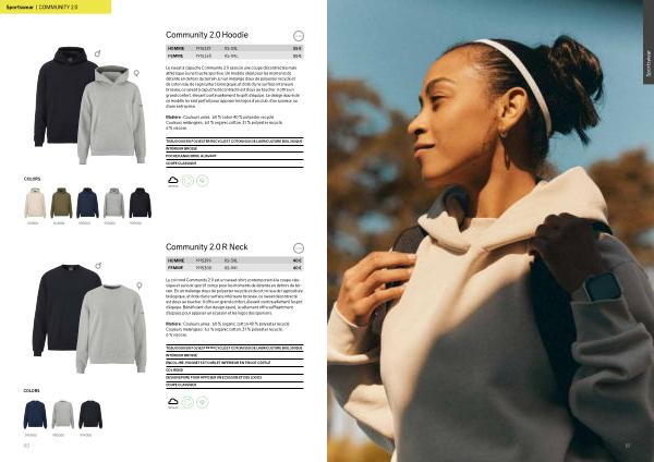 Matière: Couleurs unies: 60 % organic cotton 40 % polyester recyclé Couleurs mélangées: 63 % organic cotton, 31 % polyester recyclé, 6 % viscose.