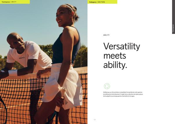 Ability joue un rôle central en complétant l ’ ensemble de notre gamme de vêtements d ’ entraînement . Il s ’ agit d ’ une collection de styles polyvalents adaptés à une large gamme d ’ activités et d ’ usages .