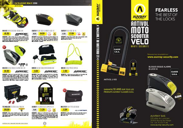 DESCRIPTIF: Antivol moto homologué CLASSE S. R. A. Corps en acier inoxydable brossé. Système d’ alarme à 120db. Sélection de la fonction de l’ alarme. Double mécanisme de verrouillage de 10 mm de diamètre. Électronique protégé contre les intempéries. Mécanisme 100 % anti-rouille. Sans commutateur marche / arrêt. Pile CR2 3V Li. Livré avec 3 clés. Clé hexagonale fournie. RÉF. BDAXX10- Gris / Noir; BDAXX10Y- Jaune / Noir