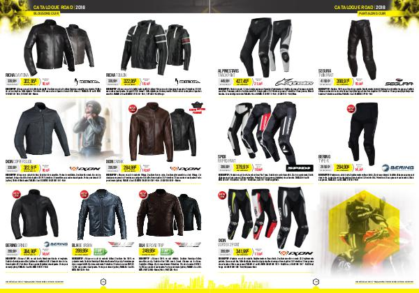 d’aisance en bas du dos et sur les flancs. Surpiqûres aux cuisses. Homologation CE. Protections CE aux genoux (réglables) et aux