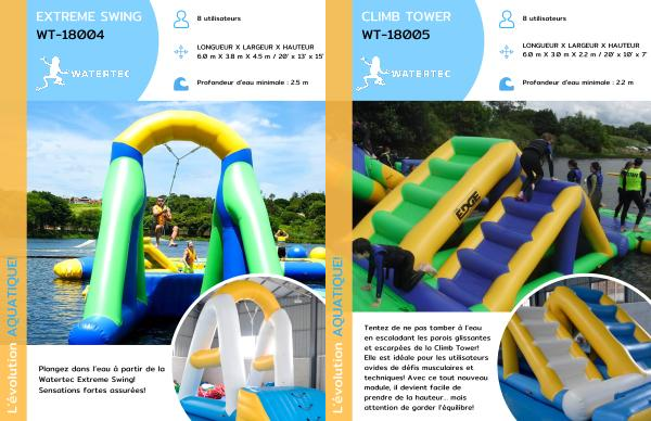 Tentez de ne pas tomber à l ’ eau en escaladant les parois glissantes et escarpées de la Climb Tower ! Elle est idéale pour les utilisateurs avides de défis musculaires et techniques ! Avec ce tout nouveau module , il devient facile de prendre de la hauteur … mais attention de garder l ’ équilibre !