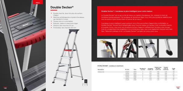 Le Double Decker ® est ce qui se fait de mieux en matière d ’ escabeaux . Sûr , résistant et doté de nombreux extras pratiques . Cet escabeau en aluminium léger vous offre une excellente stabilité pour tous les petits et gros travaux dans et autour de la maison .
