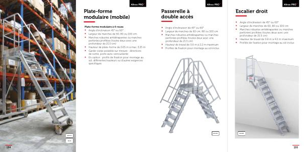 • Marches robustes antidérapantes ou marches perforées profilées ( toutes deux avec une profondeur de 21.5 cm )