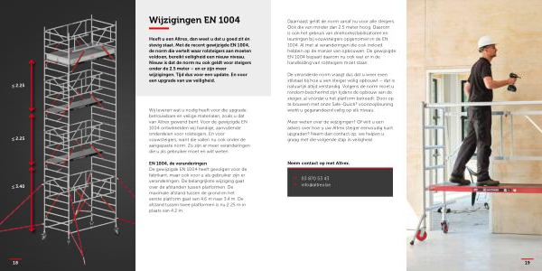 Meer weten over de wijzigingen ? Of wilt u een advies over hoe u uw Altrex steiger eenvoudig kunt upgraden ? Neem dan contact op , we helpen u graag met die volgende stap in veiligheid .
