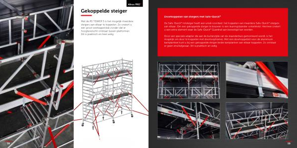 Met de RS TOWER 5 is het mogelijk meerdere steigers aan elkaar te koppelen . Zo creƫert u een groot werkoppervlak zonder dat er hoogteverschil ontstaat tussen platformen . Dit is praktisch en heel veilig .