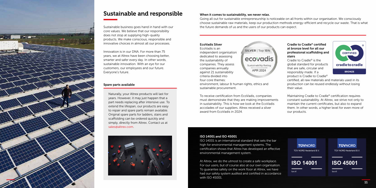 Innovation is in our DNA. For more than 75 years, we at Altrex have been choosing better, smarter and safer every day. In other words, sustainable innovation. With an eye for our customers, our employees and our future. Everyone’ s future.