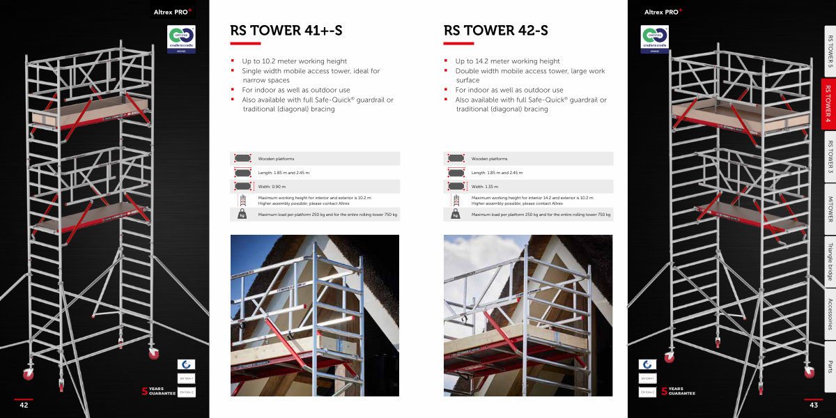 Maximum working height for interior and exterior is 10.2 m Higher assembly possible; please contact Altrex
