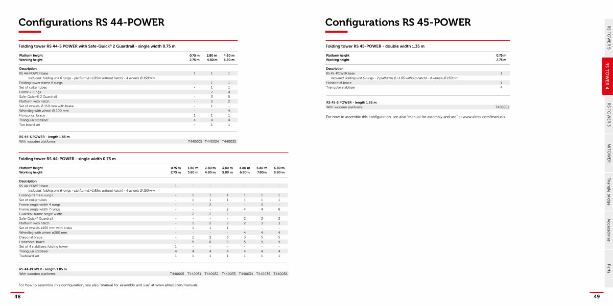 Included: folding unit 6 rungs- platform( L = 1.85m without hatch)- 4 wheels Ø 150mm Folding tower frame 6 rungs |