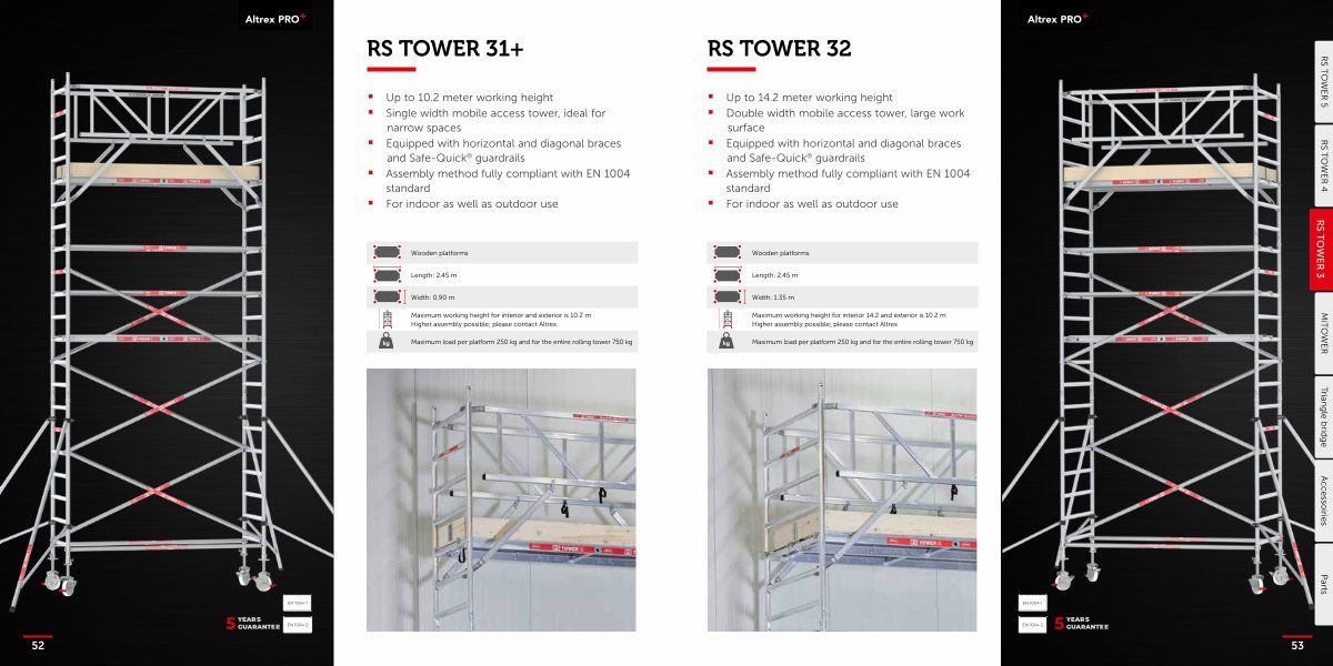 Maximum working height for interior and exterior is 10.2 m Higher assembly possible; please contact Altrex