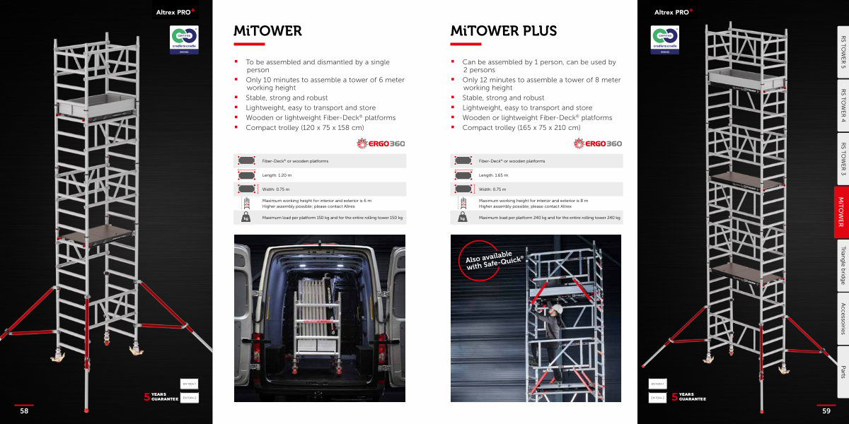 • Only 10 minutes to assemble a tower of 6 meter working height