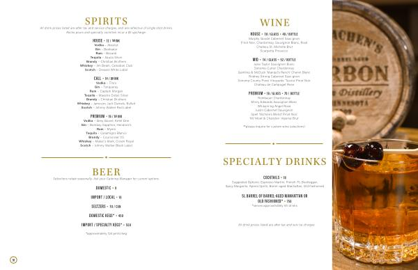 COCKTAILS • 18 Suggested Options: Espresso Martini, French 75, Bootlegger, Spicy Margarita, Aperol Spritz, Barrel-aged Manhattan, Old Fashioned